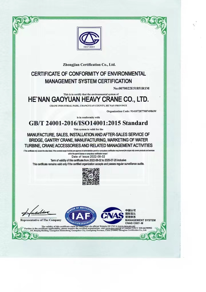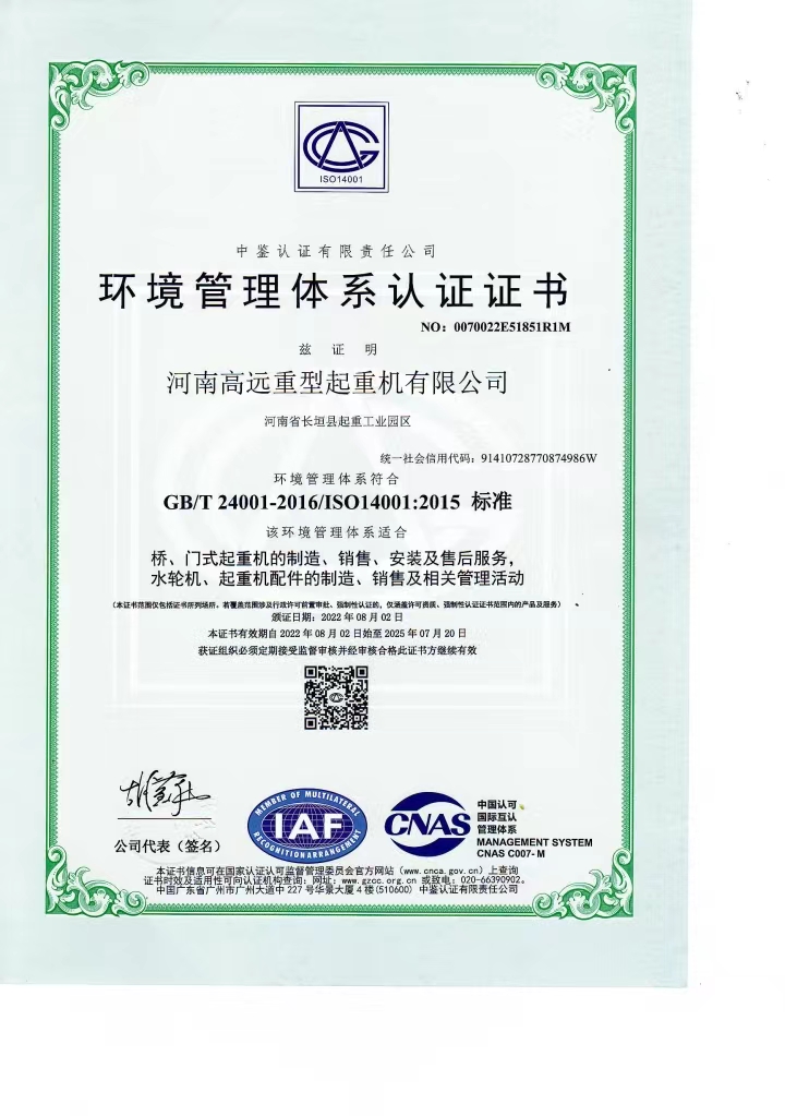 環(huán)境管理體系認證證書