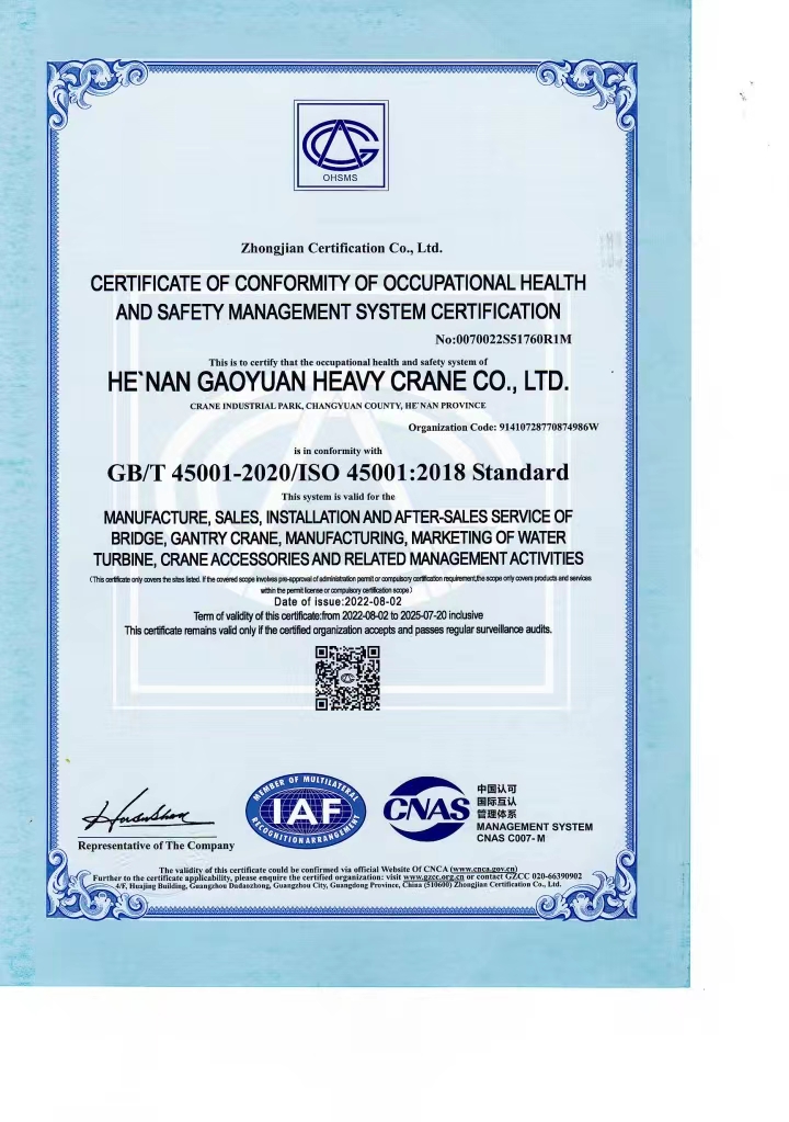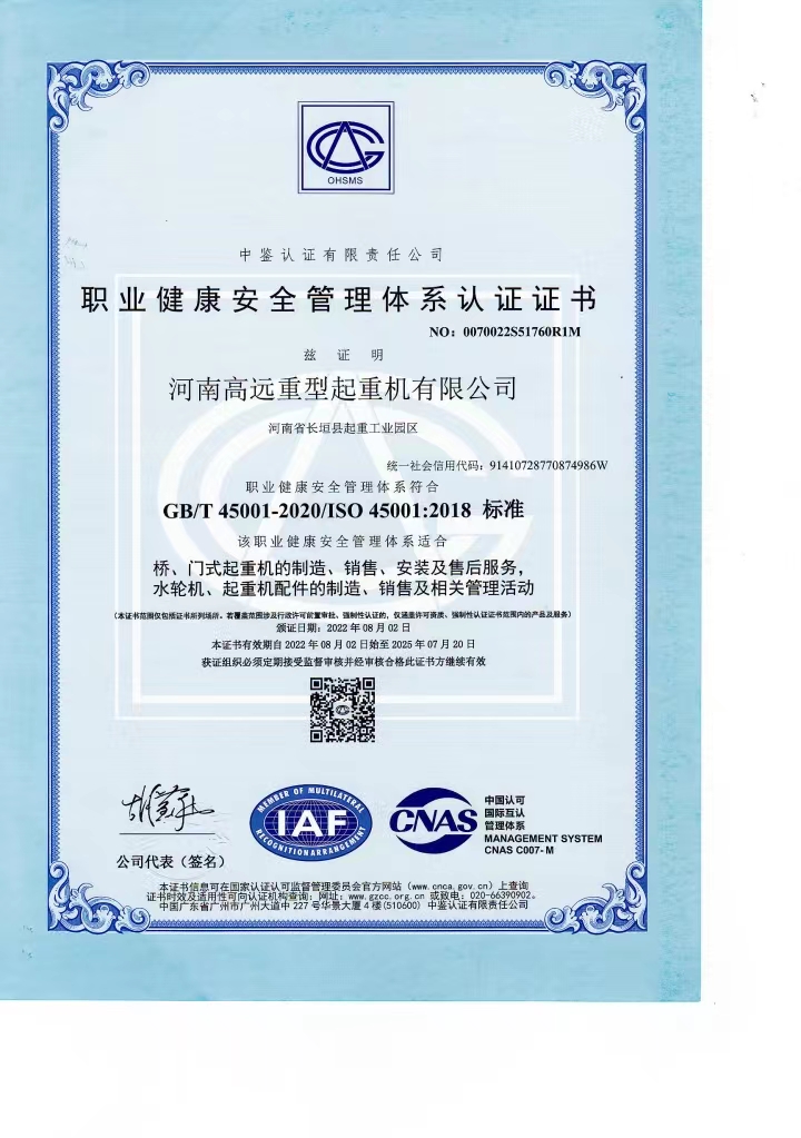職業(yè)健康安全管理體系認證證書