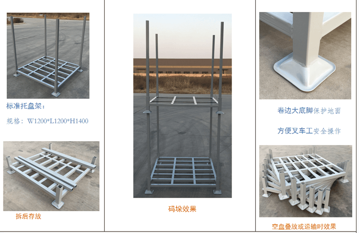 40A型托盤架 產(chǎn)品介紹:本產(chǎn)品主要優(yōu)點(diǎn)是與叉車配合實(shí)用,可充分利用倉庫高度空間。降低倉儲費(fèi)用,管理和經(jīng)營費(fèi)用。主要用于軟袋子包裝和紙箱包裝物品存放 和顆粒物品存放防止積壓,常用于冷鏈、飼料、塑料顆粒倉儲及物流。